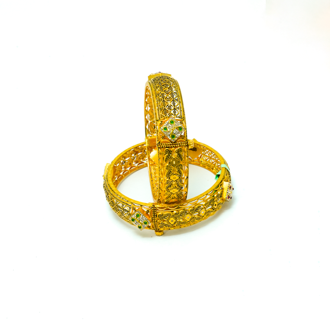 Our artisans pay attention to every curve, polish, and pattern, ensuring that each bangle not only looks stunning but also feels comfortable to wear. Choose from a wide range of traditional, antique, temple-style, filigree, and modern minimalistic designs that enhance your beauty and complement every outfit.