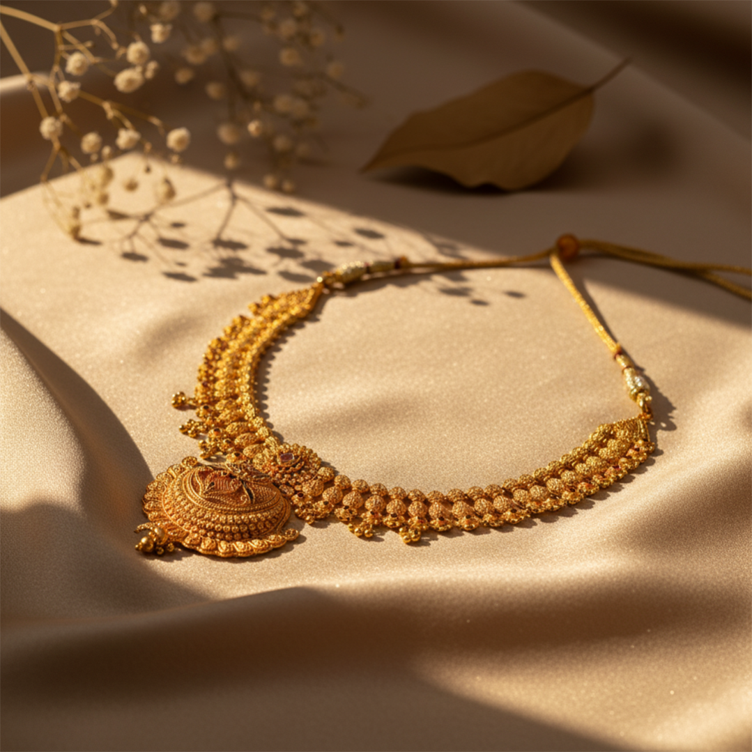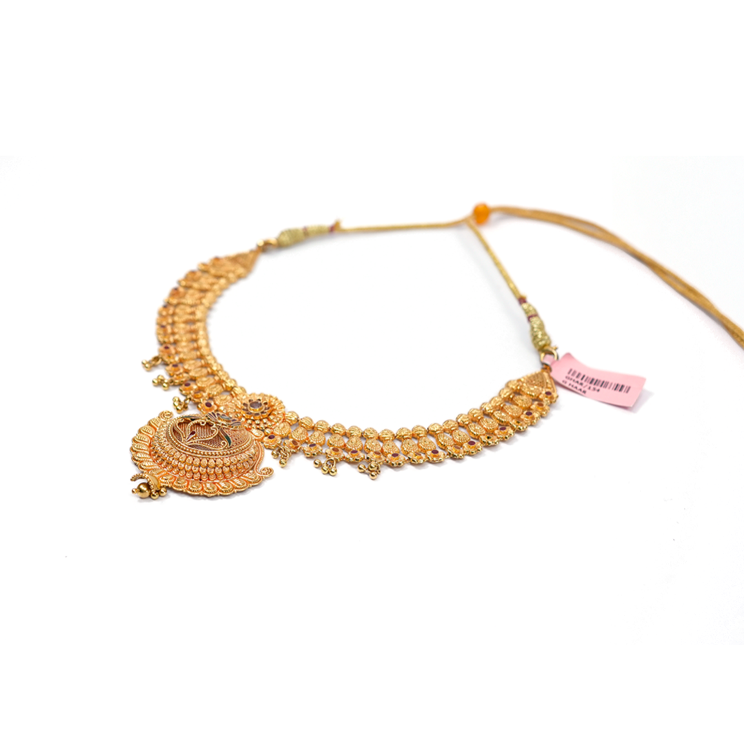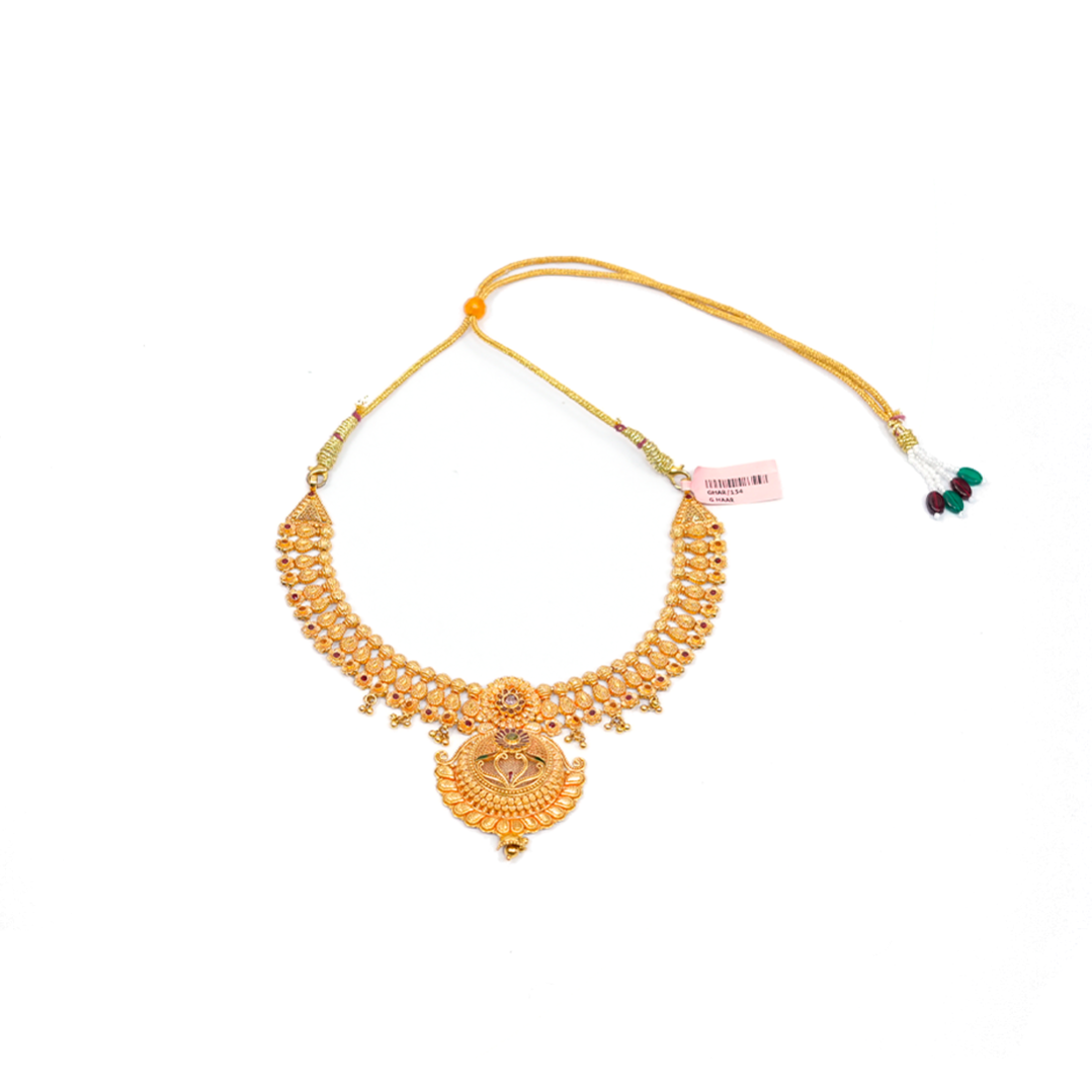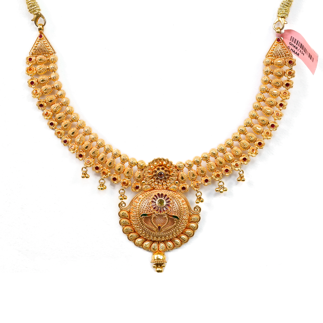 A finely crafted haar cut featuring intricate patterns and elegant detailing that enhances the beauty of traditional jewellery.