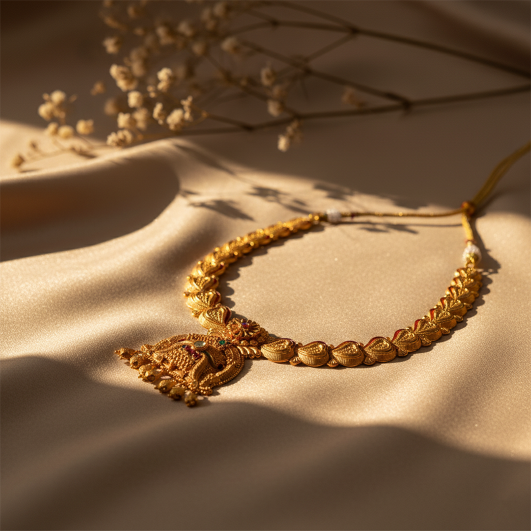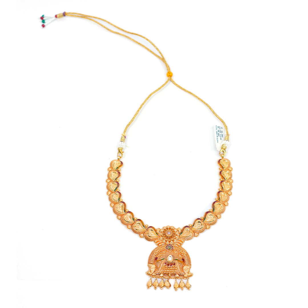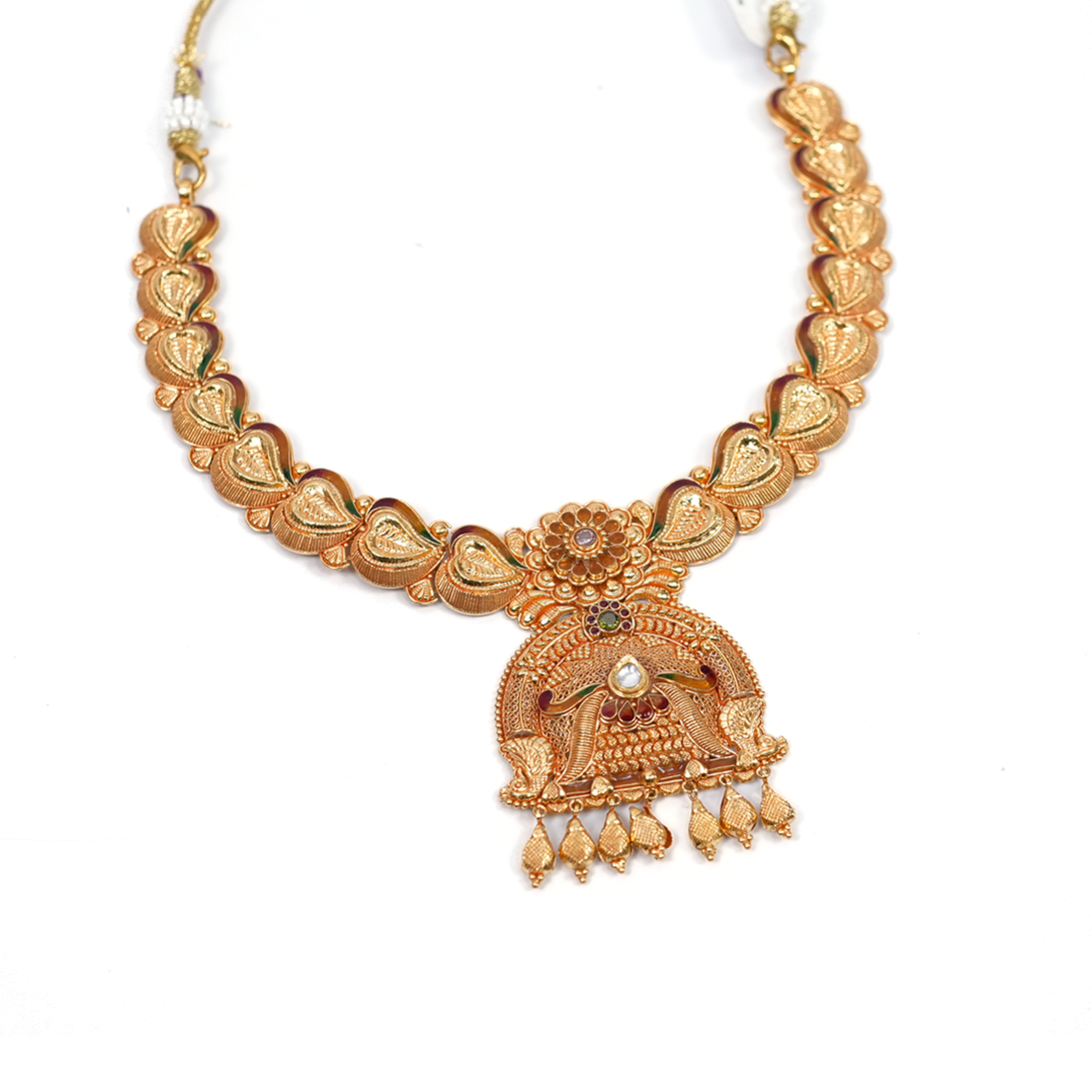 A finely crafted haar cut featuring intricate patterns and elegant detailing that enhances the beauty of traditional jewellery.