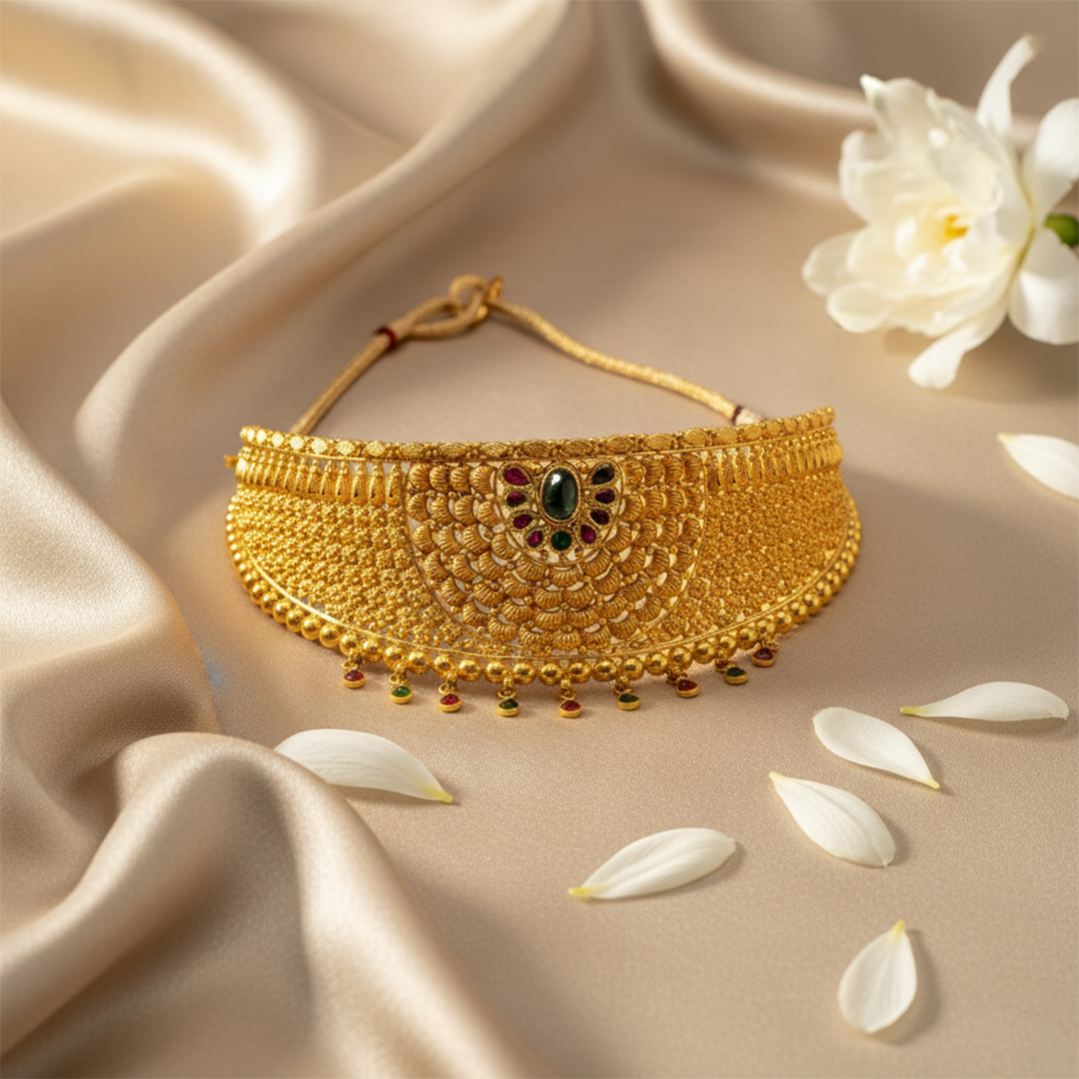 Mahalaxmi Jewellery presents finely crafted gold necklaces that reflect purity, luxury, and tradition.