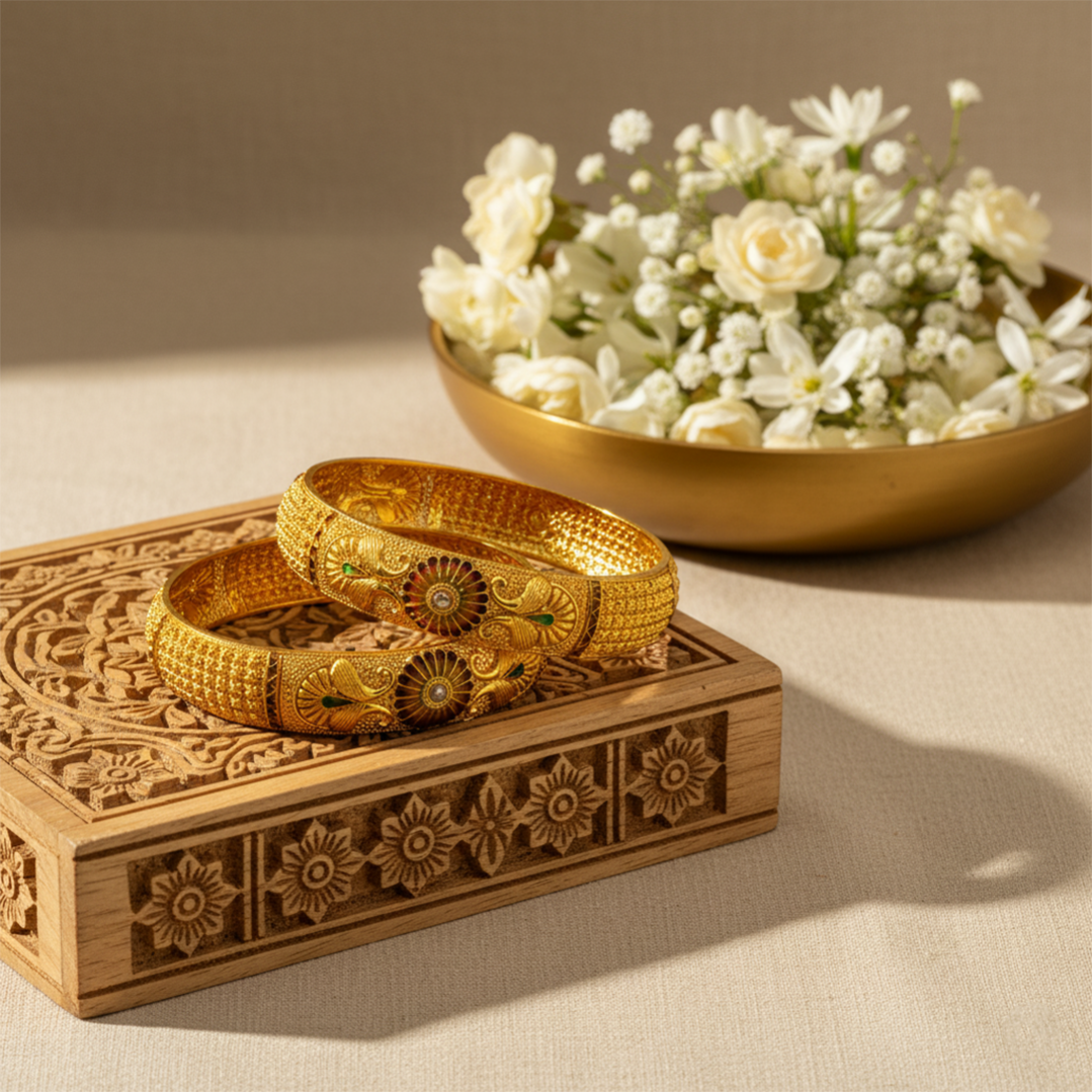 Stylish Gold Bangles for Every Moment. From daily wear to bridal charm, discover perfection in every curve.